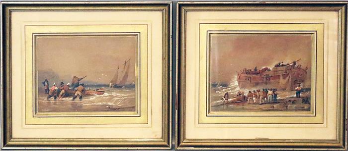 Pendants: Englische Küsten mit Fischern und Seeleuten an Schiffen