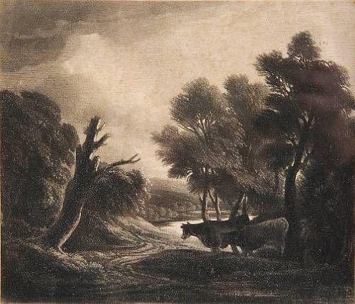 The Cottage - A Moonlight Scene' and 'Landscape and Cows'