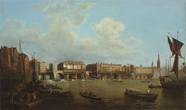 | An extensive view of the Thames and the city of London with old London Bridge from the East, the church of St. Magnus and the Mo | |