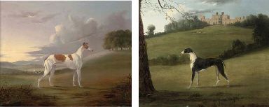 | A prize greyhound in an extensive landscape, a country house beyond; and A prize greyhound in an extensive landscape | |