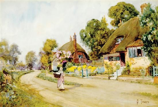 THATCHED COTTAGES ALONG COUNTRY LANE