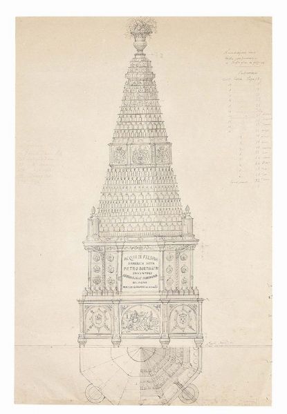 Due disegni raffiguranti «Progetto per piramide di bottiglie»