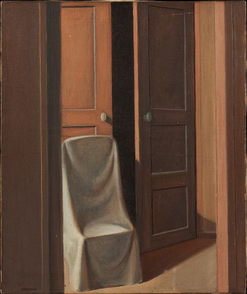 Chaise recouverte devant une porte entrouverte