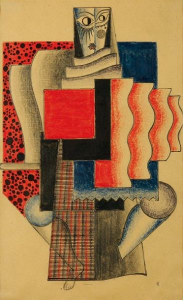 Crayon in colour, pencil, pastel, watercolor and pencil lead on paper