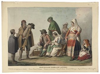 | Paysans portant le costume régional de Terra di Lavoro, Lazio; et Paysans portant le costume régional de Chieti, Abruzzo | |