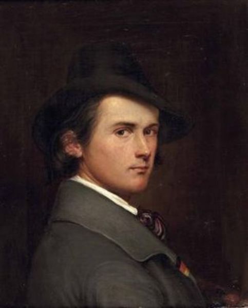 Bildnis eines jungen Herrn mit Hut und einer Reversbinde in Schwarz-Rot-Gold