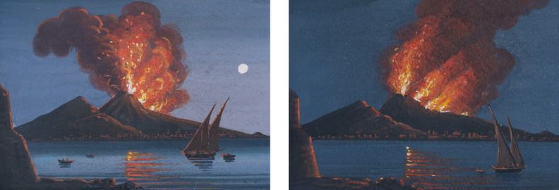 Veduta di Napoli con eruzione del Vesuvio