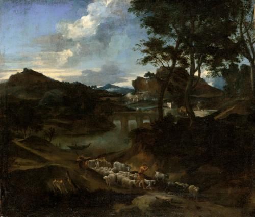 PAESAGGIO CON PASTORI E ARMENTI PRESSO UN FIUME