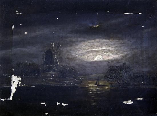 Moonlit coast with windmill