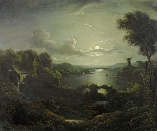 Dutch landscape in the moonlight.