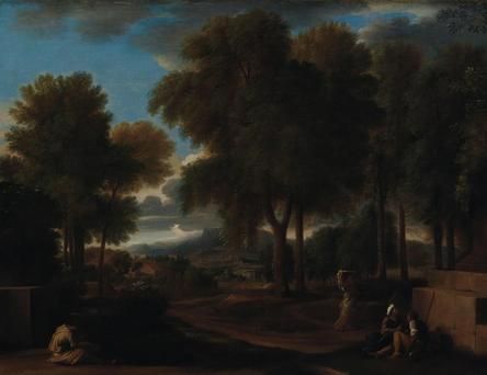 | Italianate Landscape with a Monk and Peasants by a Fountain | |