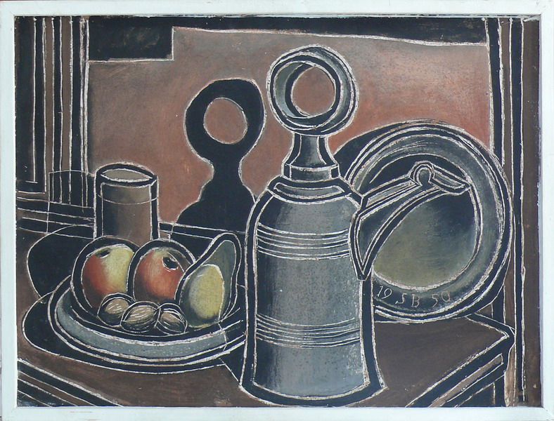 Stillleben mit Zinnkanne u. Obstteller