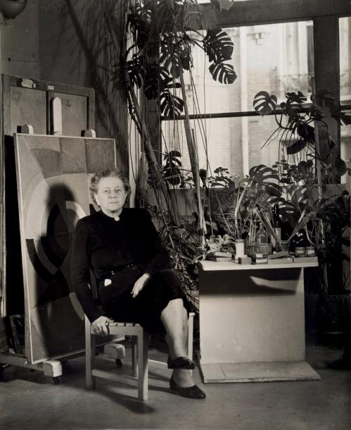 Sonia Delaunay (1885-1979) dans son intérieur.