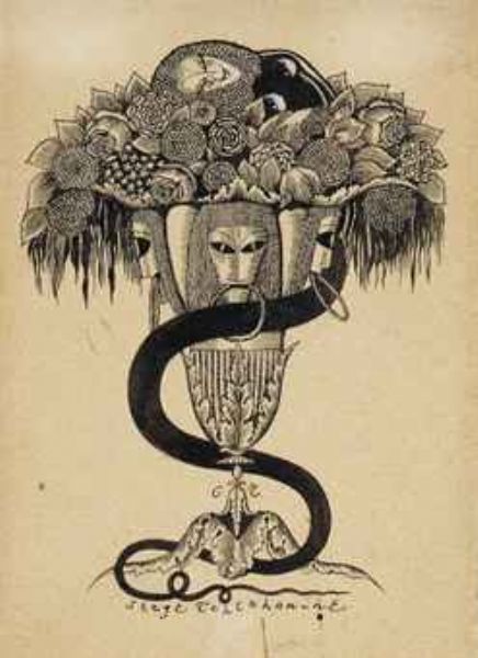 | Frontispiece with a floral cup with masks and a snake demon | |