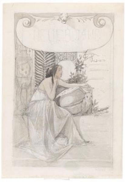 Frau in einem Saloninterieur mit Globus und Eule, Soldat mit einer Trommel