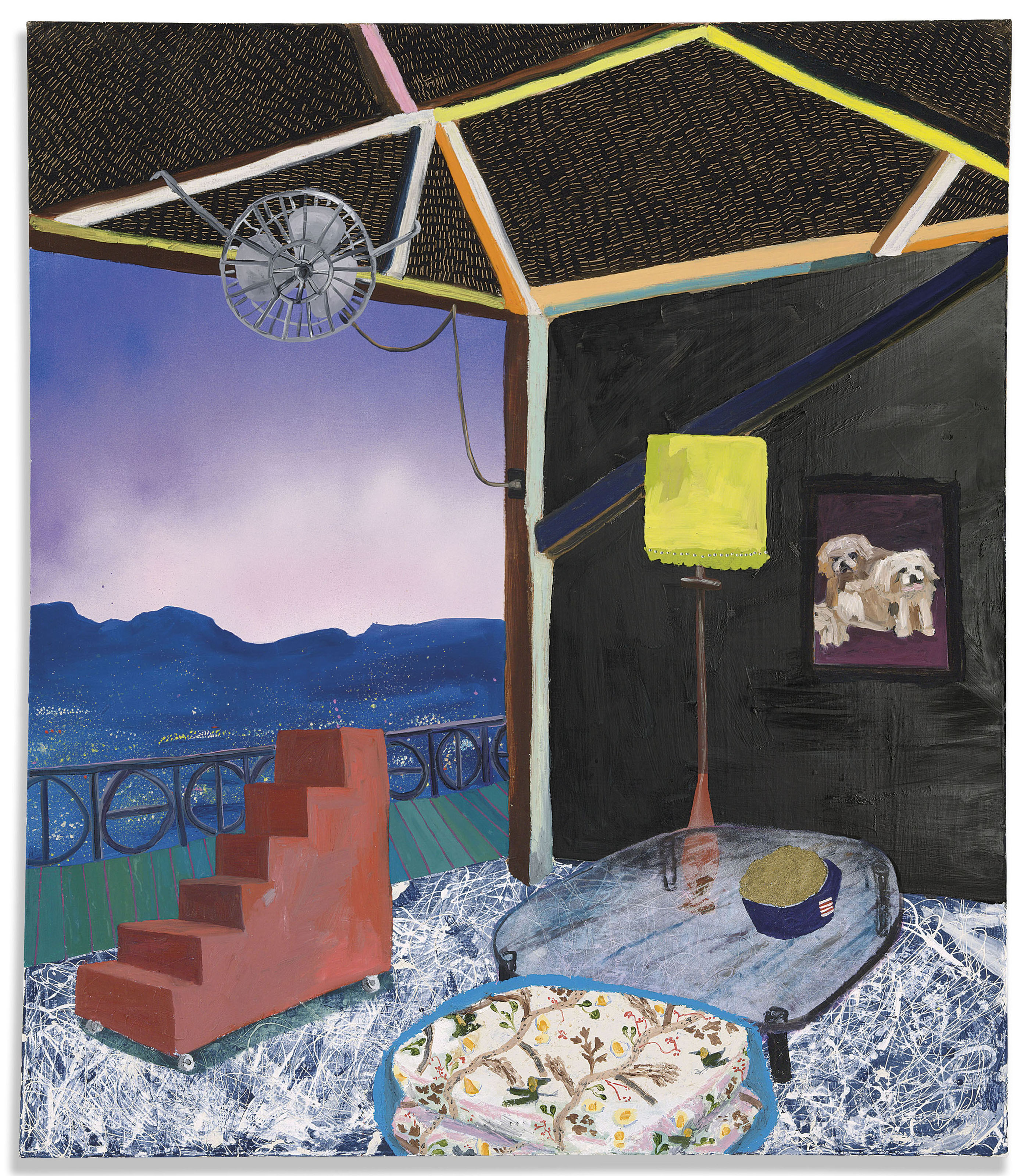 | Oil glitter, rhinestones and spray enamel on canvas | |