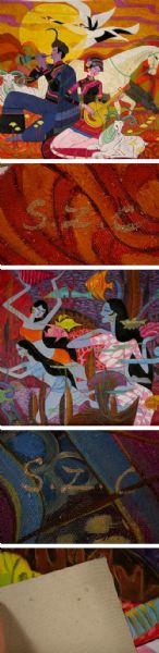 Two pieces: (1) Women with Fish and (2) Couple with Goats