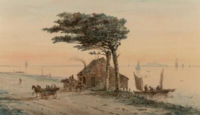 | View on Long Island Sound with Bay, House, and Carriages | |