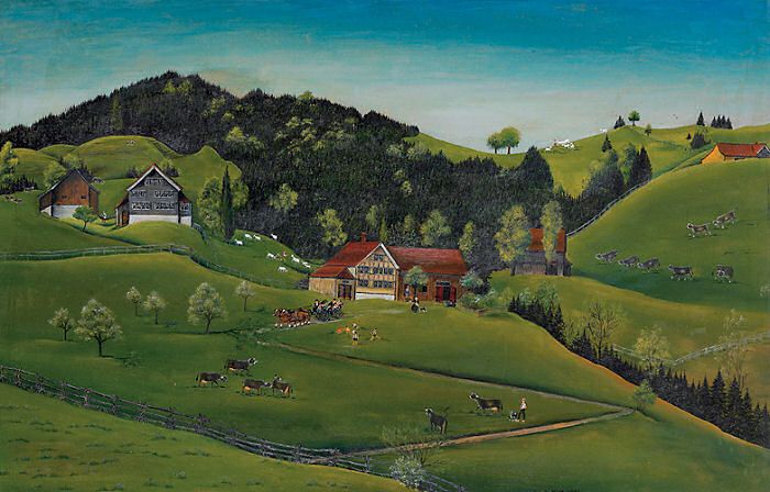 Appenzeller Frühlingslandschaft mit Hochzeitskutsche