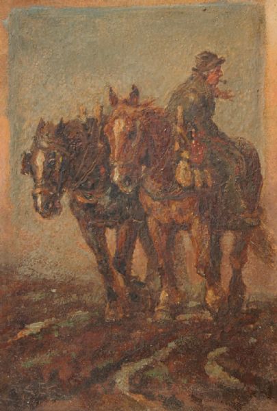 Figure smoking a Pipe on Horseback beside another Horse in a Landscape