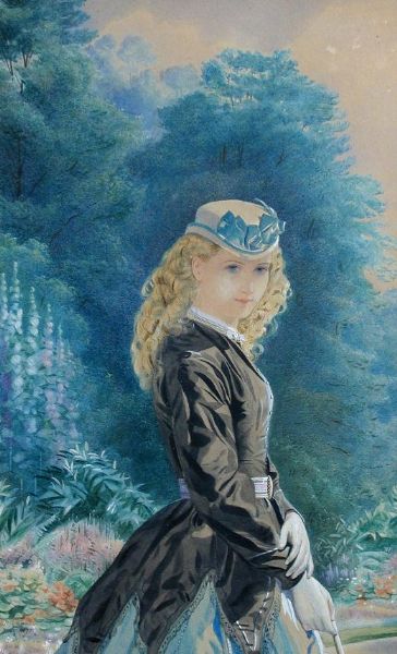Portrait of a Young Girl in Morning Dress in a Garden