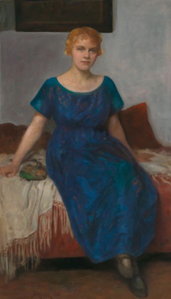 Young Woman in a Blue Dress Sitting (Frau Trinkl)