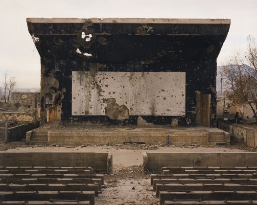 | Bullet-scarred outdoor cinema at the Palace of Culture in the Karte Char district of Kabul, 2002 | |