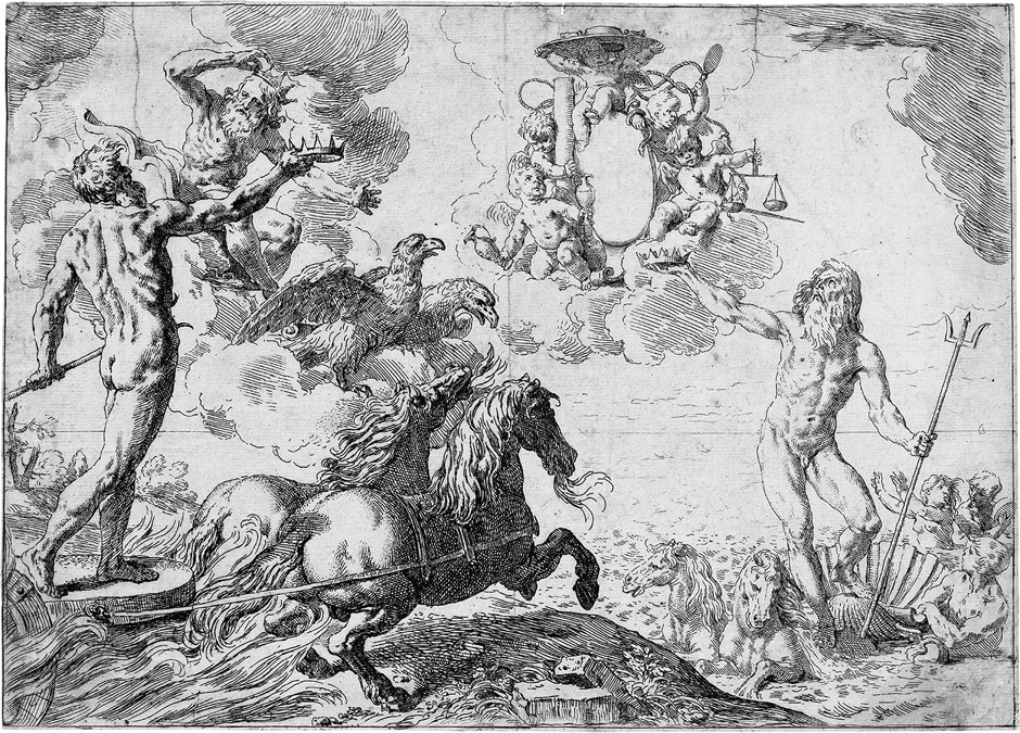 | Jupiter, Neptun und Pluto bieten ihre Kronen dem Wappen des Kardinals Barberini an (Le Quos ego) | |