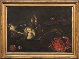 NATURA MORTA CON VOLATILI, GRANCHI E FUNGHI