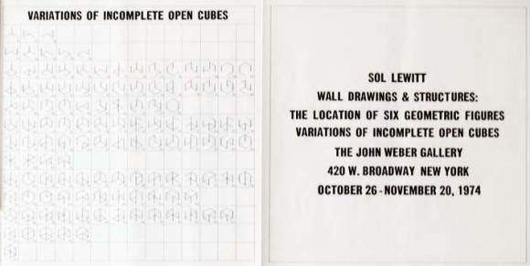 | Wall drawings & structures. The location of six geometric figures variations of incomplete open cubes the John Weber Gallery. 19 | |