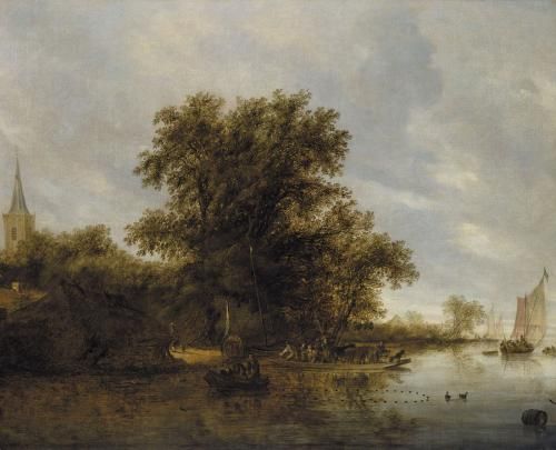 A RIVER LANDSCAPE WITH A CATTLE FERRY