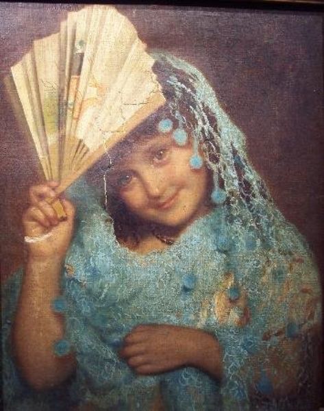 Young Girl in Spanish Shawl with Fan