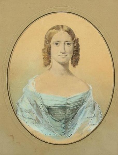 | Pencil watercolour and gouache on paper in oval passepartout | |