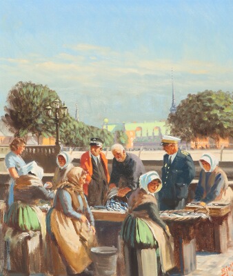 Fisher wives at Gammelstrand with a postman and a police officer