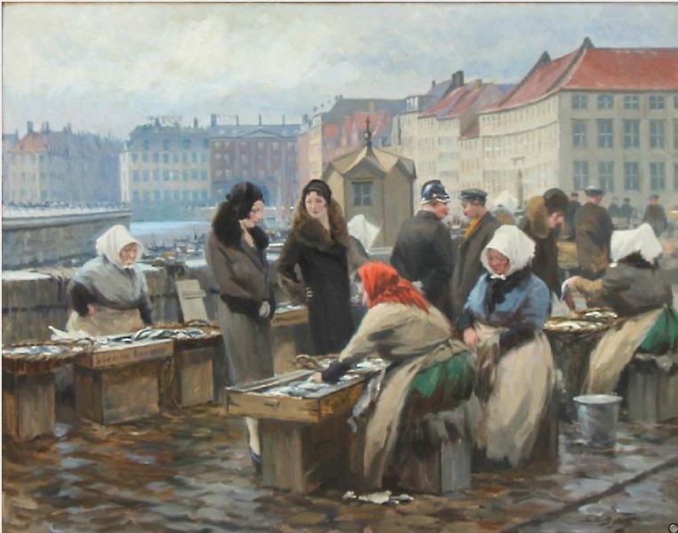 | Fishermens' wife selling fish at Gl. Strand in Copenhagen | |