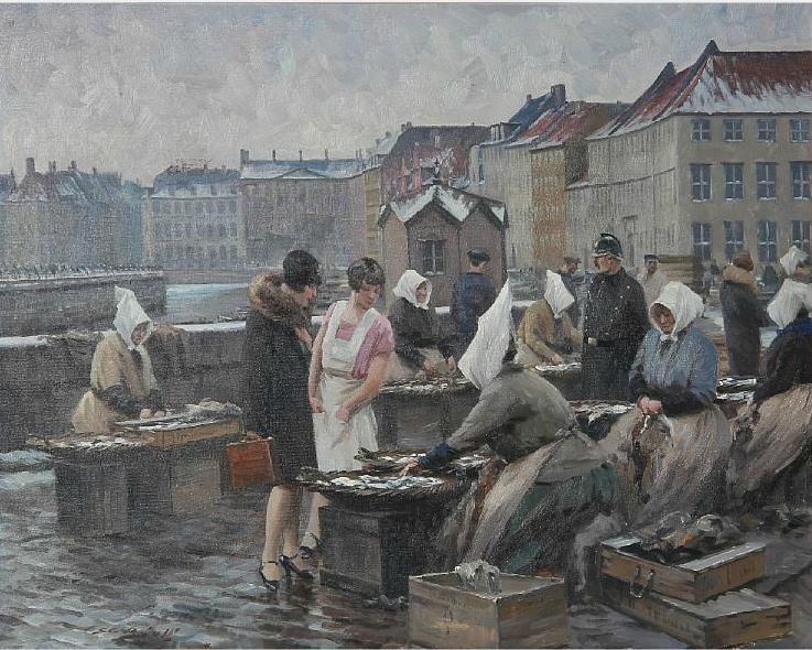 | Fishermens' wife sells fish at Gammel Strand, Copenhagen. | |