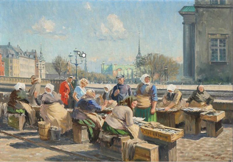 Fishermens' wives selling fish at Gl. Strand, Copenhagen