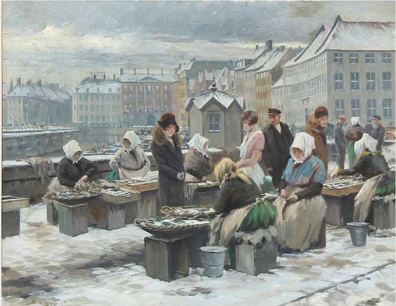 Women selling fish in Copenhagen, winter