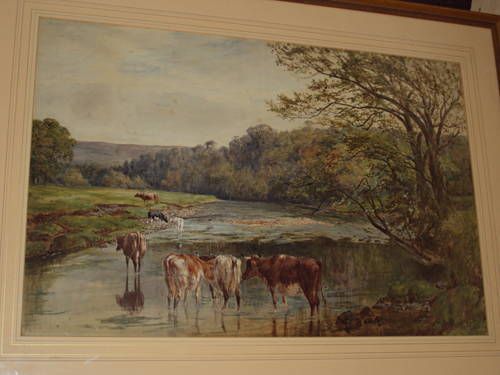 Cattle watering at a riverside, in a landscape