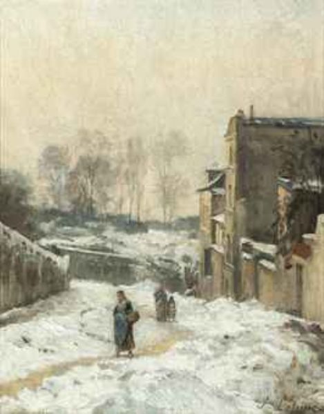 | Figures in the snow, La Rue Cortot, Montmartre | |