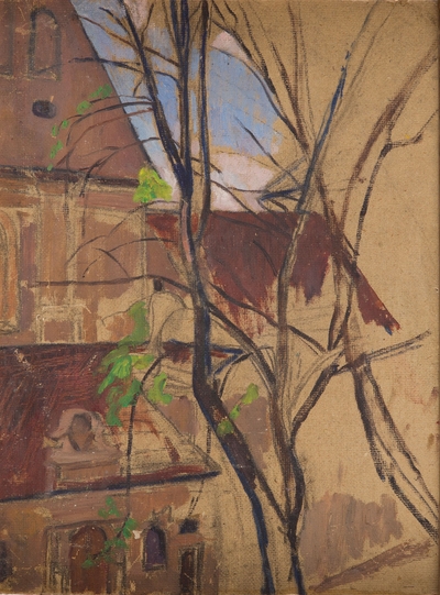 | Oil on cardboard | |