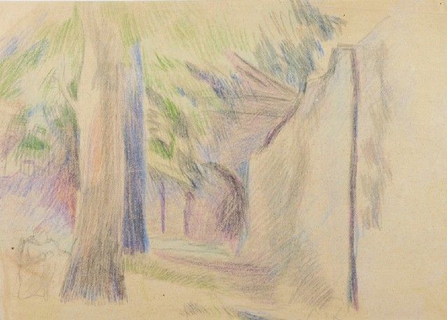 | Drzewa pod starym murem oraz szkic postaci zakonnika | |