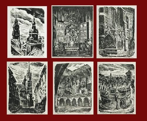Kraków 6 drzeworytów St. Raczyńskiego