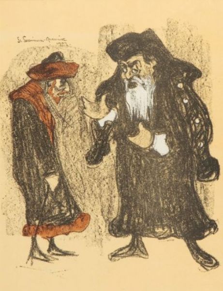 | Józef Kotarbiński jako Shylock i Stanisław Bronicz jako Tubał w sztuce Szekspira "Kupiec wenecki" | |