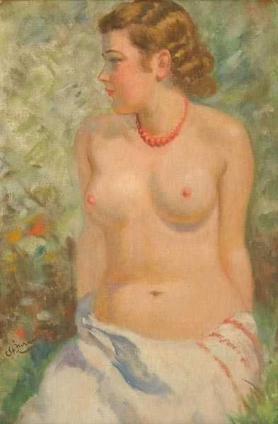 Dziewczyna w czerwonych koralach. Półakt