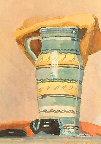 Still life of a jug and beads