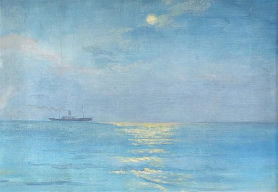 Steamboat on the Horizon at Moonlight