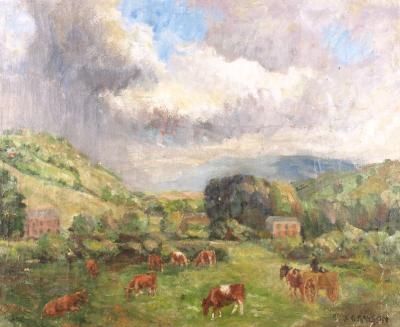Cattle and cottages in a valley