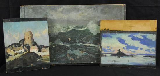 COLLECTION OF SIX PAINTINGS ON WOOD