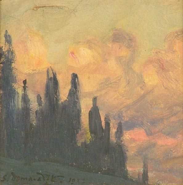 Pejzaż z cyprysami